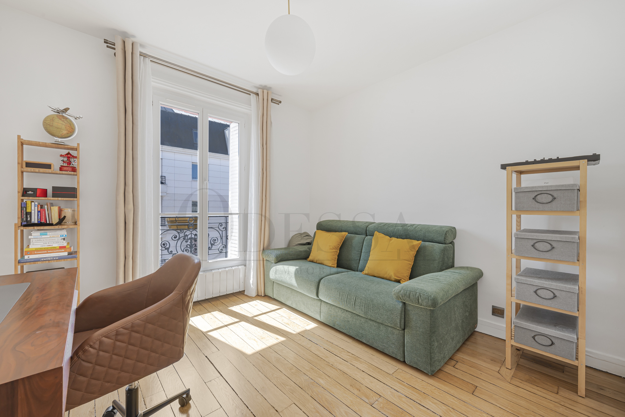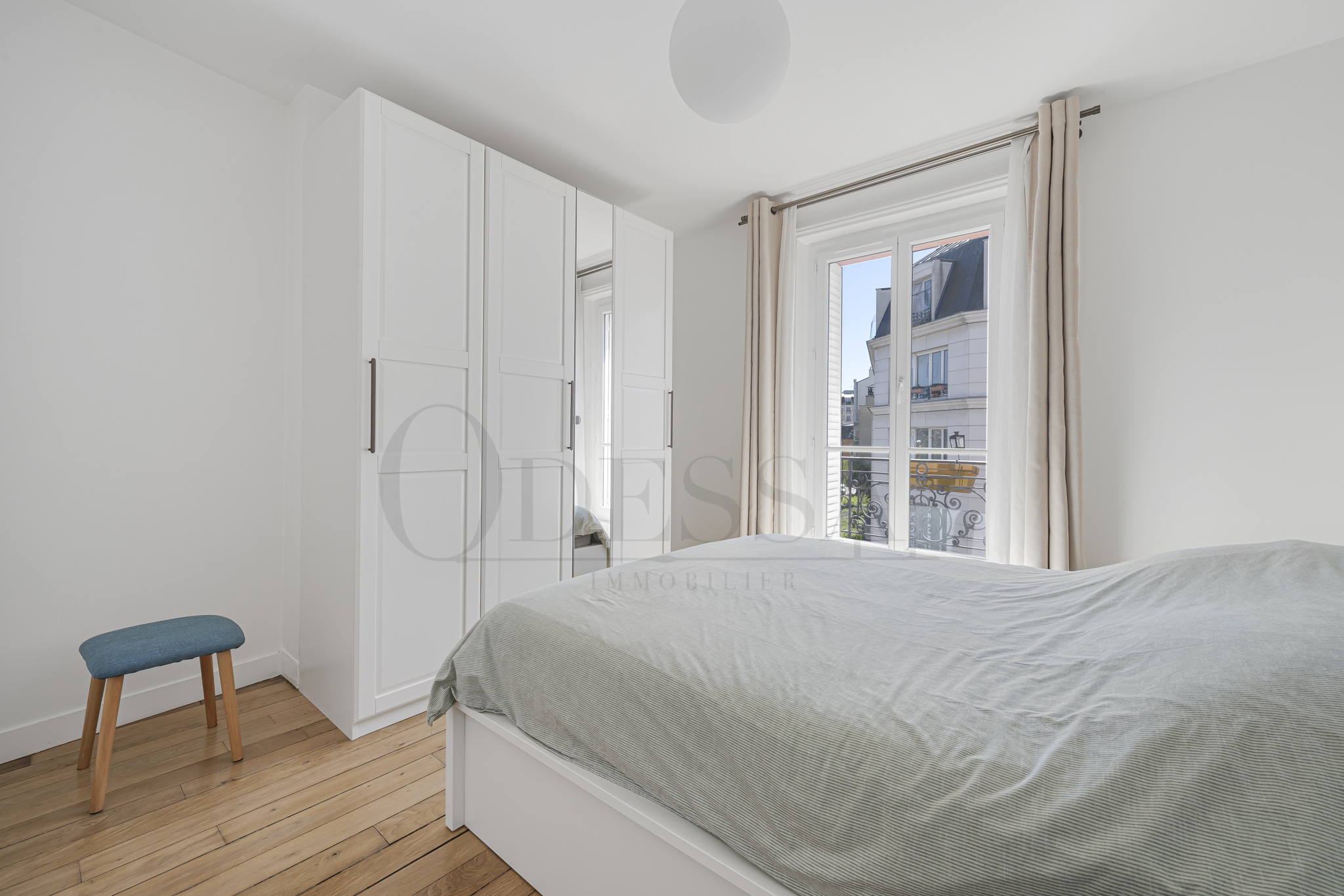 Il s'ouvre sur un agréable séjour prolongé par une cuisine aménagée avec goût, parfaitement intégrée à l'espace et s'y fondant harmonieusement. L'espace nuit, bien distinct de la pièce de vie, se compose d'un espace de distribution fonctionnel avec rangements intégrés menant à deux belles chambres et une salle de bains. Aucun travaux n'est à prévoir.
